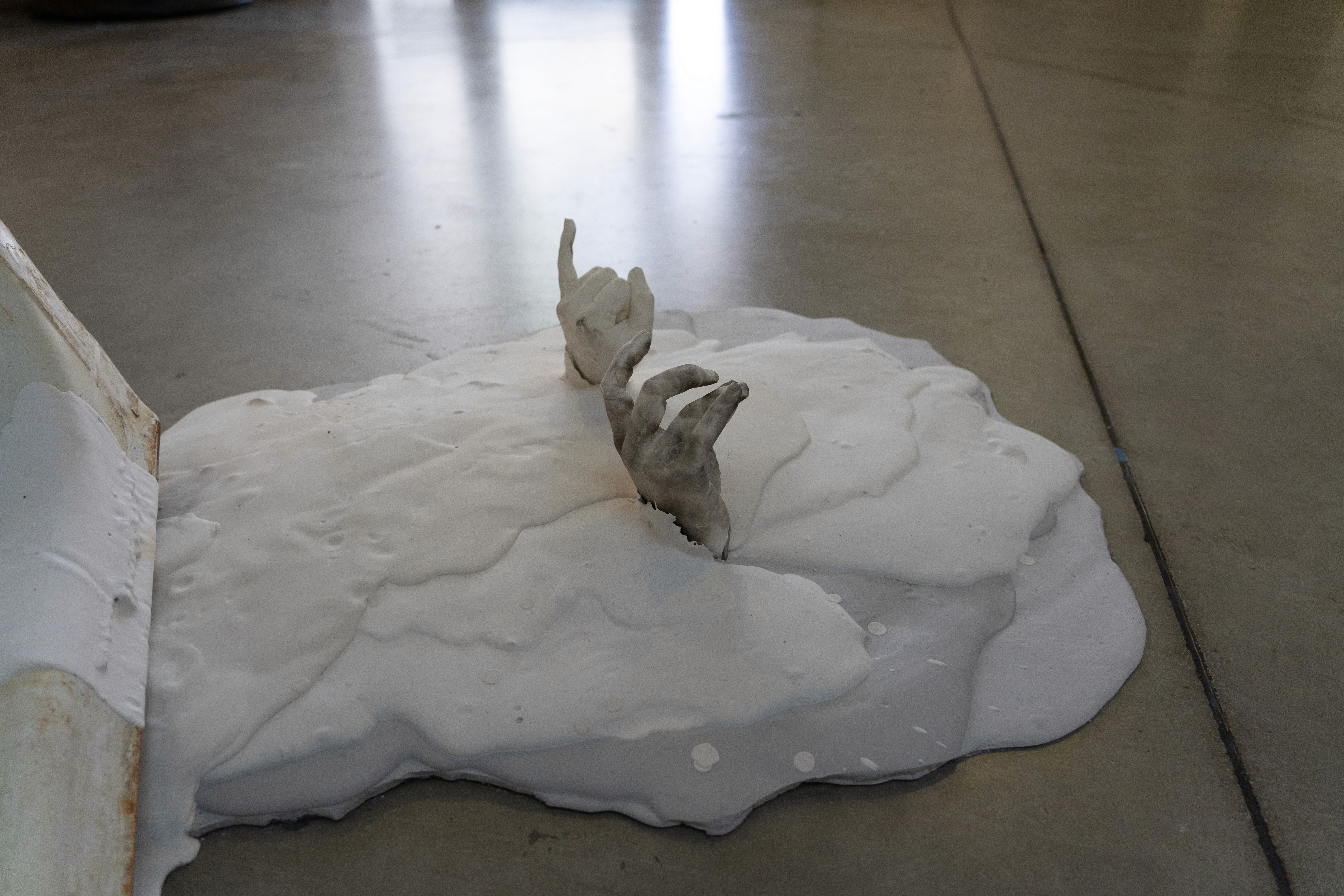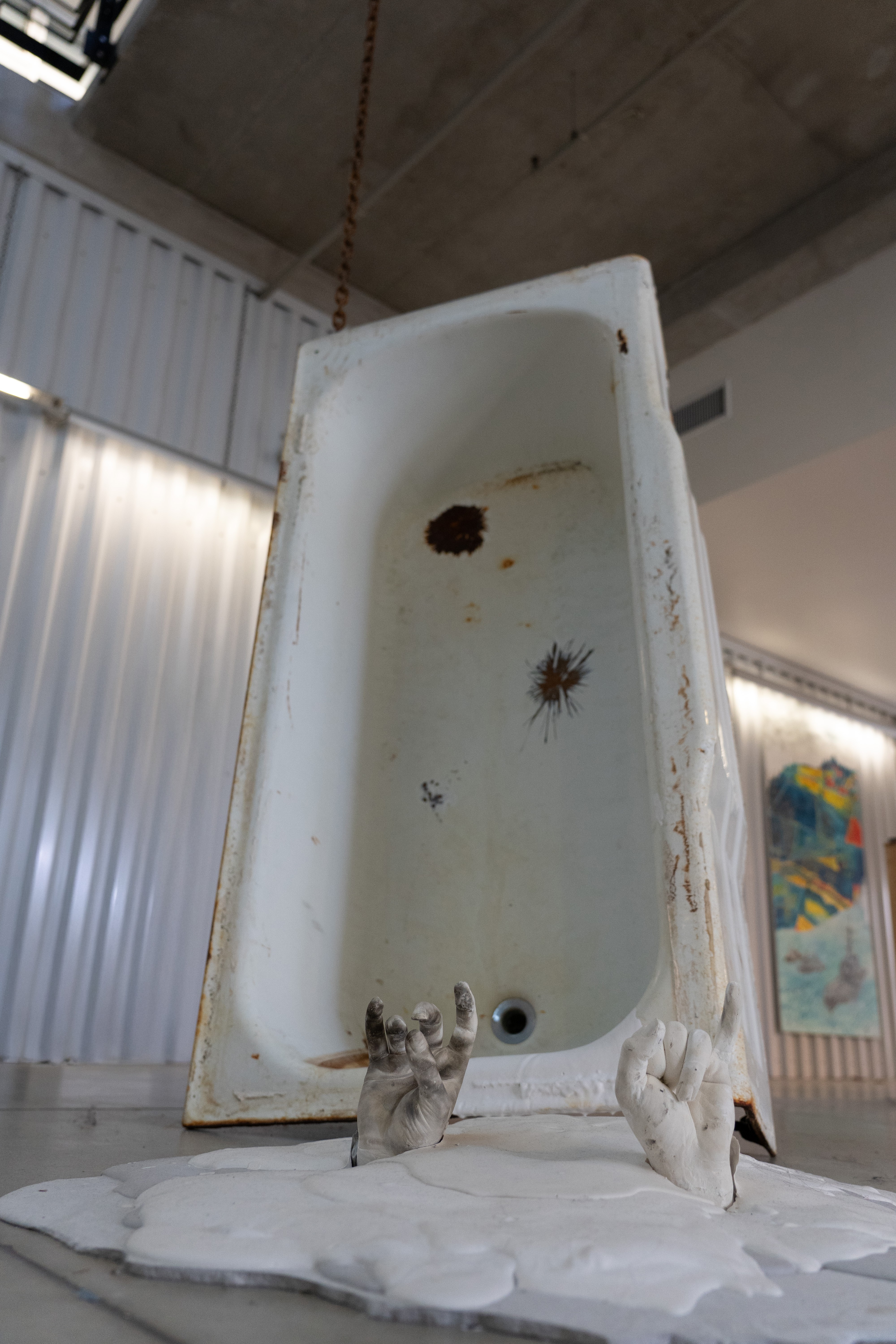 Using recycled materials and plaster, Agios Baptism is a playful critique of societies ongoing reach for divinity. The piece references baptisms, an act of piety. Remains of this cleansing are symbols, inviting the viewer to contemplate their own relationship and interpretation of divinity.