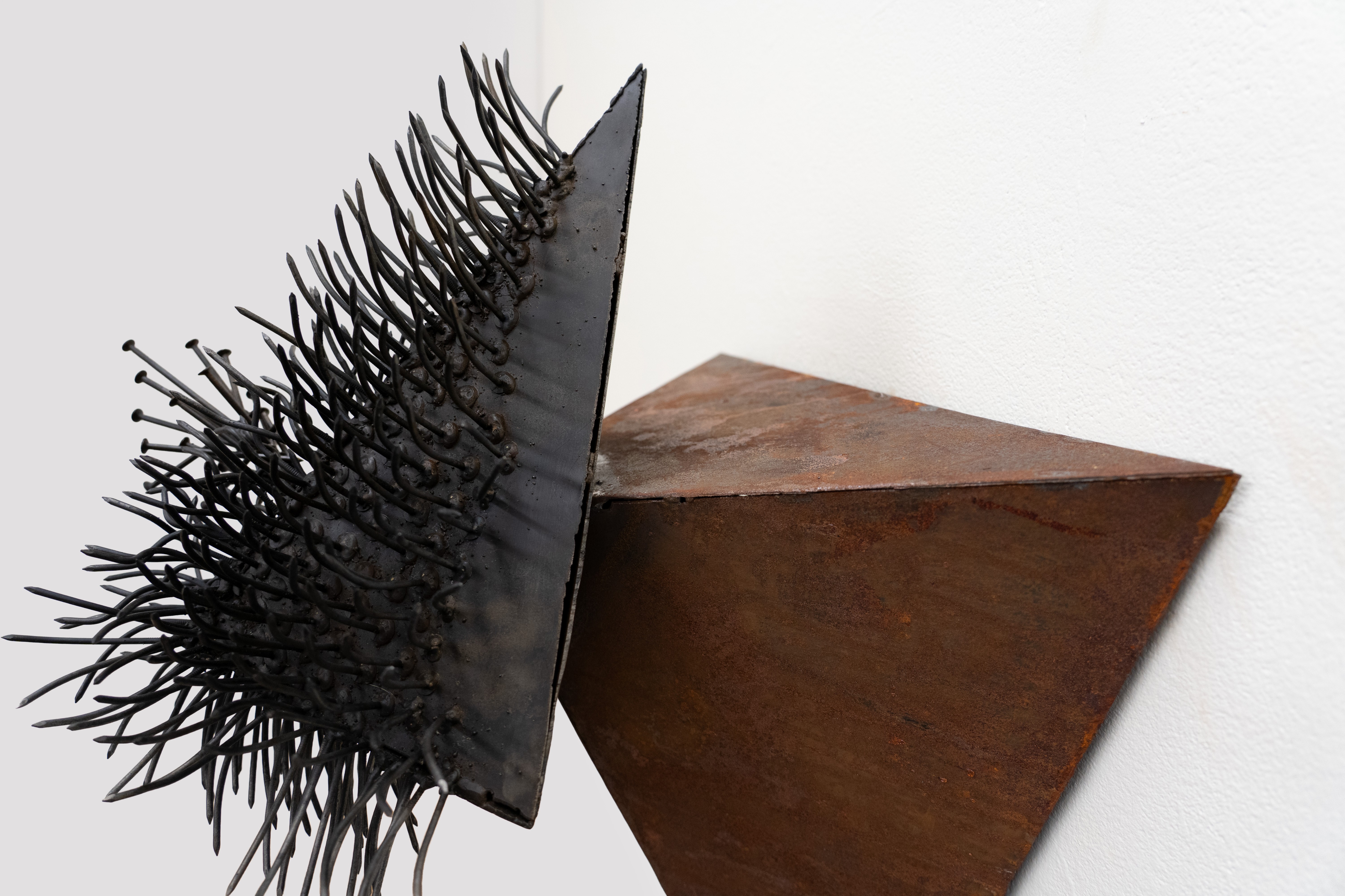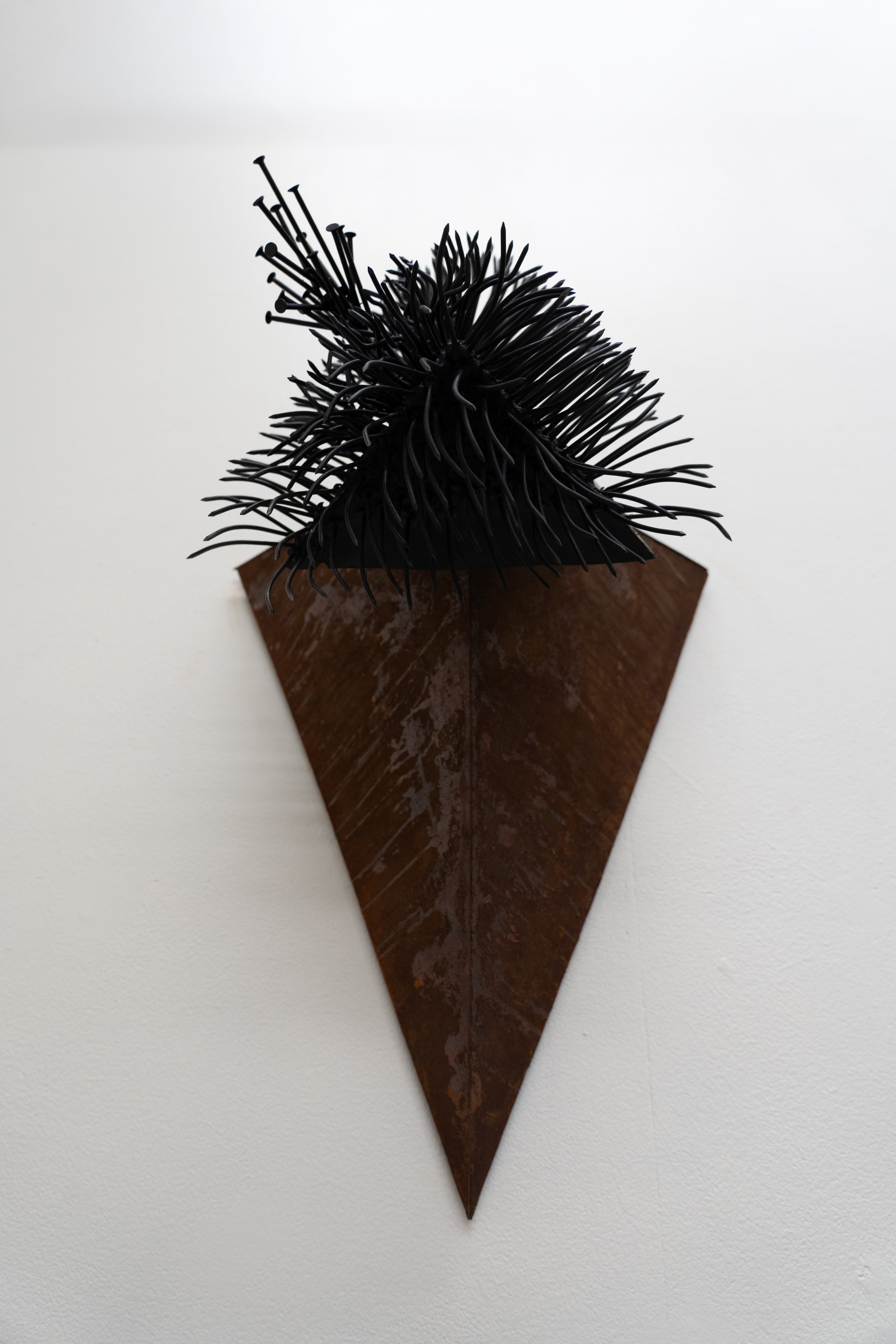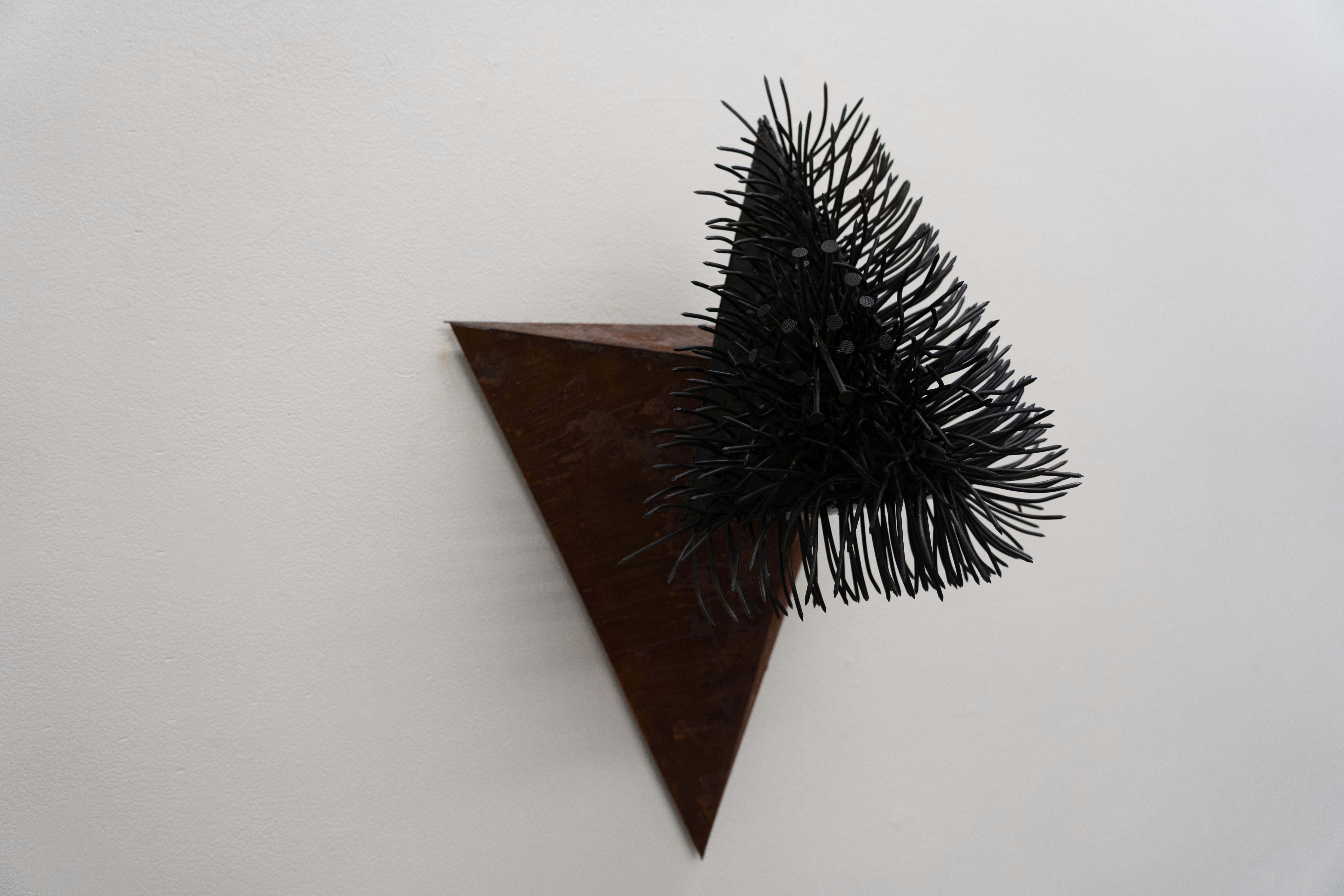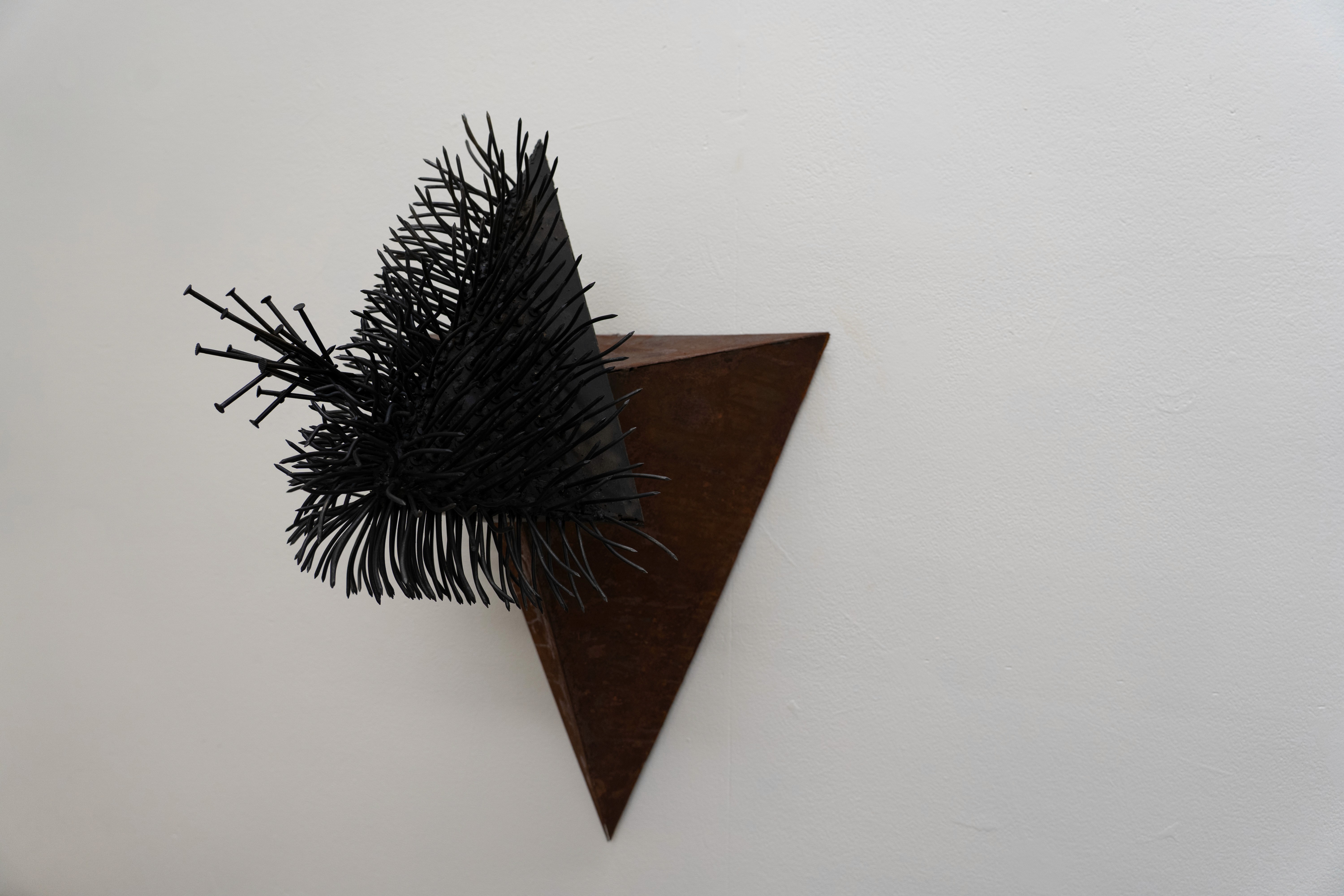 Sanctuary for the Forgotten Shape explores the fragile boundary between support and suffocation. At its core, it represents mutual dependence and the connections meant to stabilize. In contrast it also shows how those same connections can slowly deteriorate and harden into structures that confine. Each nail points in its own direction but is ultimately locked in place: held together, immobilized.
